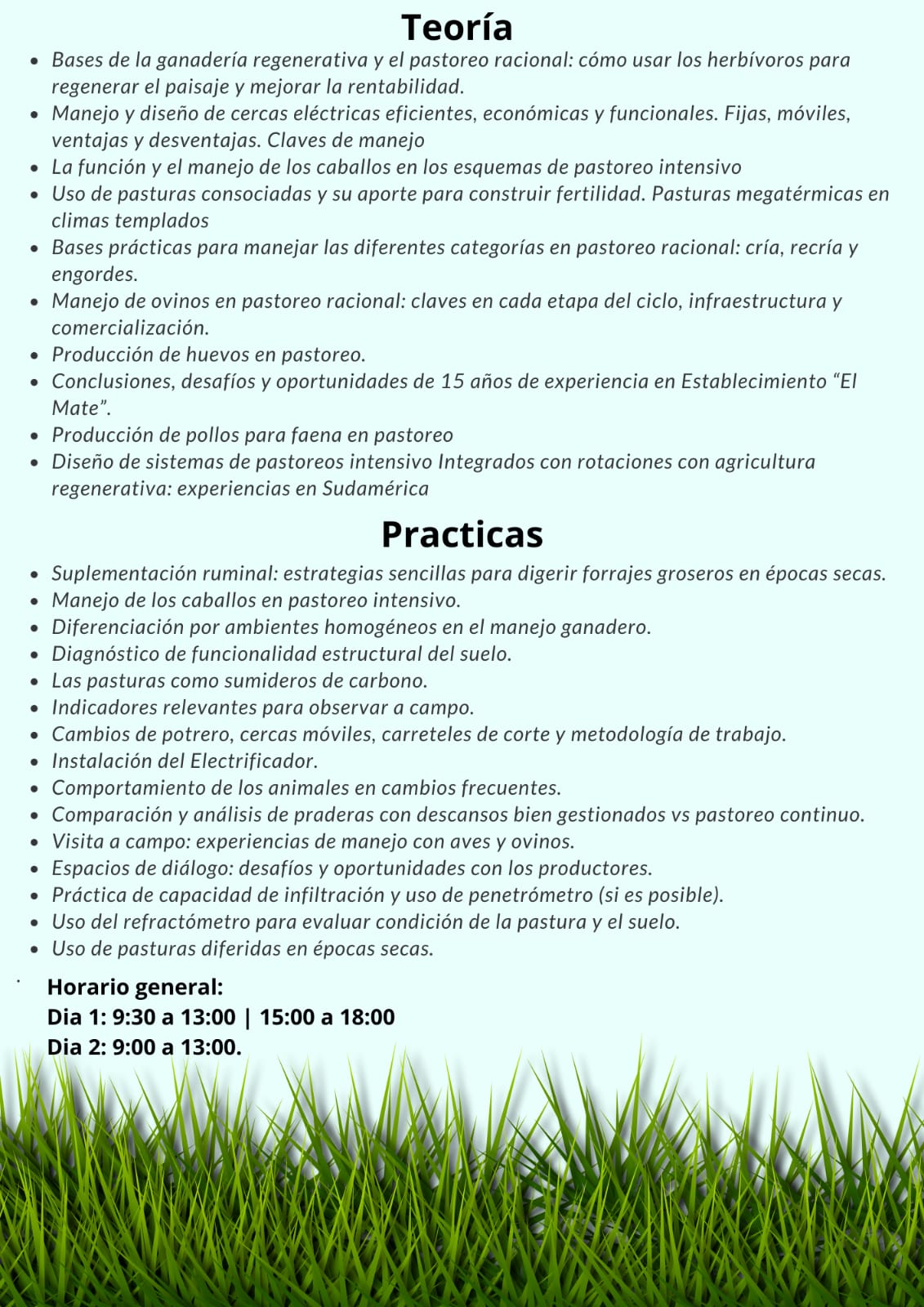 - Bases de la ganadería regenerativa y el pastoreo racional: cómo usar los herbívoros para regenerar el paisaje y mejorar la rentabilidad.