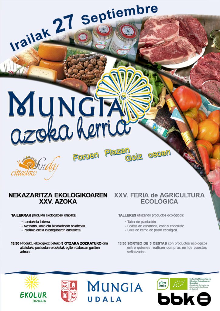 Como viene siendo habitual, la asociación de agricultura ecológica de Bizkaia, Ekolur, presenta la vigésimo quinta edición de la Agricultura Ecológica de Mungia.
